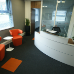 Market leading communication experts Communicate Better have just moved into their stunning new Head Office in Birchwood Warrington. DBI have assisted with several potential sites over a 2 year period, and were delighted to work with clients that have total trust in our ability to deliver such a stunning office. Starting with an empty shell, DBI provided extensive 3D visualisations prior to creating space for 80 staff, with innovative storage/print areas and frameless glass management offices & meeting rooms. A bespoke Corian curved kitchen, and entrance lobby flow into the stunning Boardroom, with bespoke media wall, LED lighting and minimal Italian boardroom furniture.