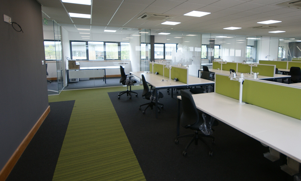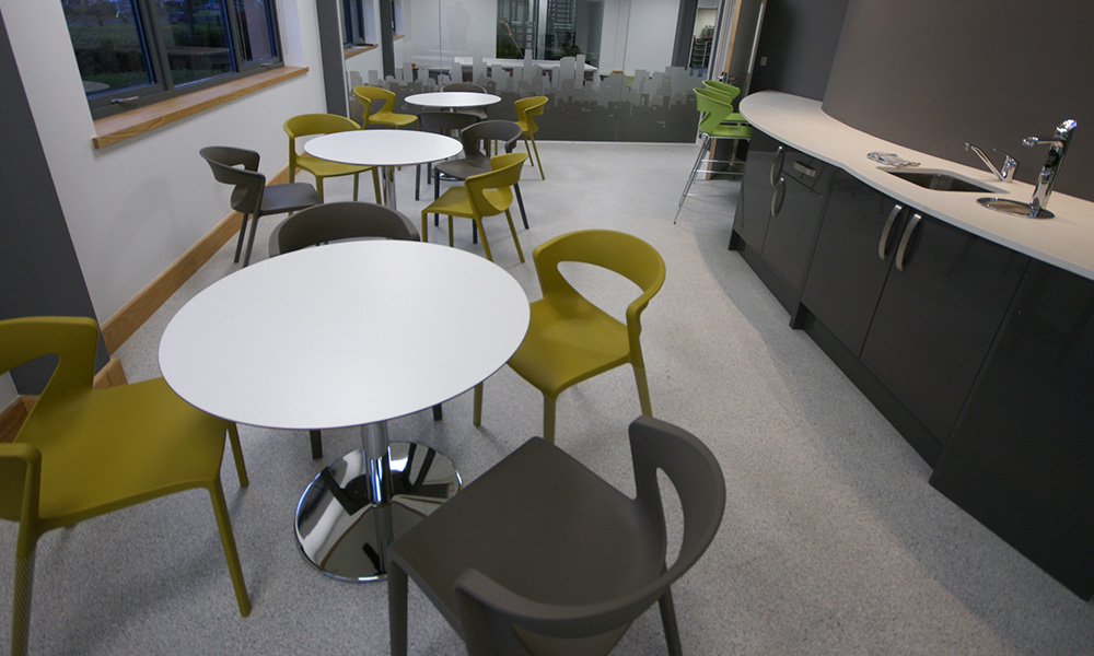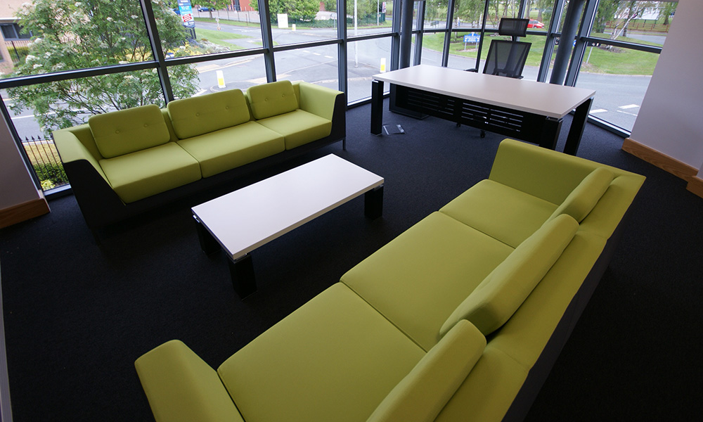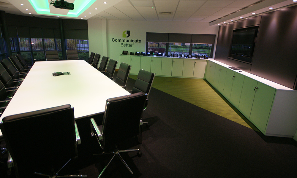 Market leading communication experts Communicate Better have just moved into their stunning new Head Office in Birchwood Warrington. DBI have assisted with several potential sites over a 2 year period, and were delighted to work with clients that have total trust in our ability to deliver such a stunning office. Starting with an empty shell, DBI provided extensive 3D visualisations prior to creating space for 80 staff, with innovative storage/print areas and frameless glass management offices & meeting rooms. A bespoke Corian curved kitchen, and entrance lobby flow into the stunning Boardroom, with bespoke media wall, LED lighting and minimal Italian boardroom furniture.